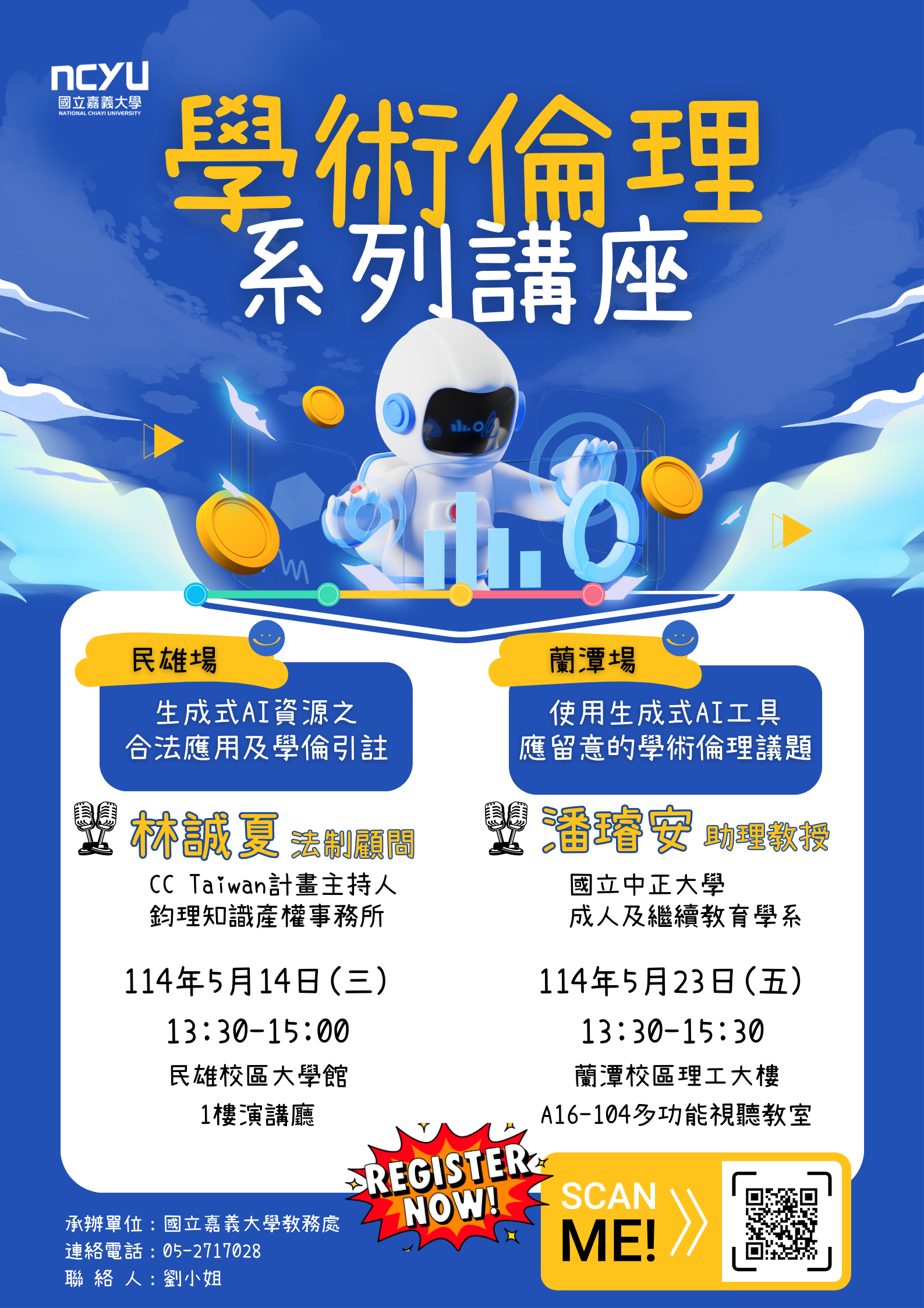 二、檢附活動海報及交通資訊,本案聯絡人:國立嘉義大學教務處教學發展組劉淑君專任助理(05-2717028)。